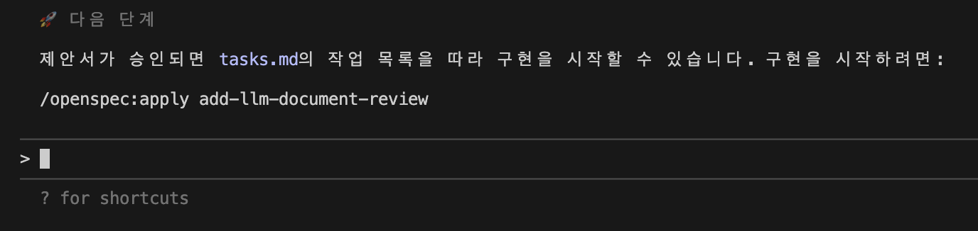 설치 후 사용하고 있는 AI Agent에 아래 명령어를 입력하여 OpenSpec을 호출할 수 있다.